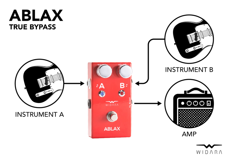 Díky obousměrnému zapojení lze box použít jak pro jeden vstup a dva výstupy (např. přepínání mezi zesilovači), tak pro dva vstupy do jednoho výstupu (např. dva nástroje do jednoho aparátu).