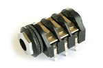 6,3 mm jack zásuvka, stereo, spínaná, break - break - break kontakty, do PCB, kovová matice.