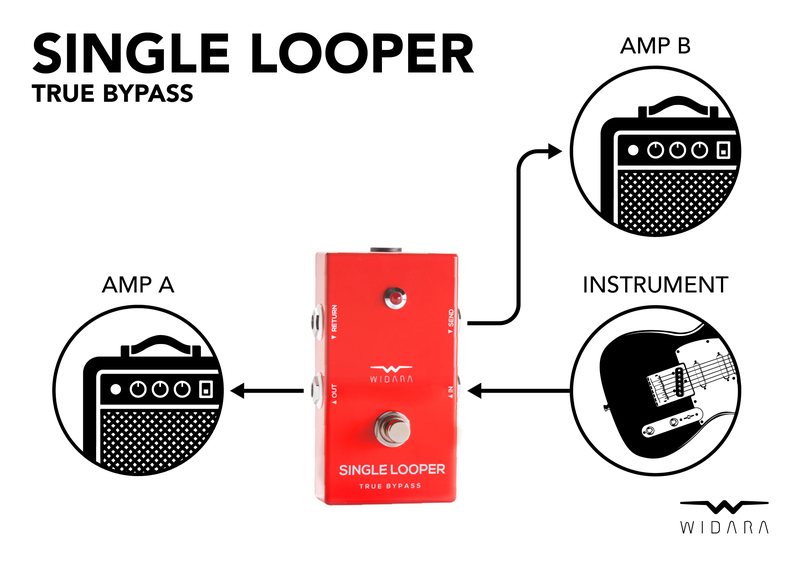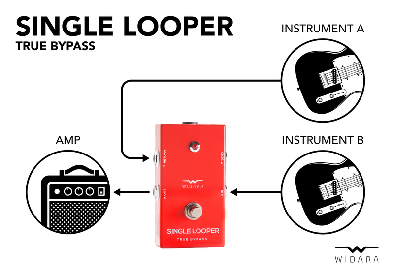 WIDARA SINGLE LOOPER Mini Version je kompaktní efektový looper určený pro jednoduché zapnutí nebo vyřazení efektové smyčky bez ovlivnění kvality signálu.